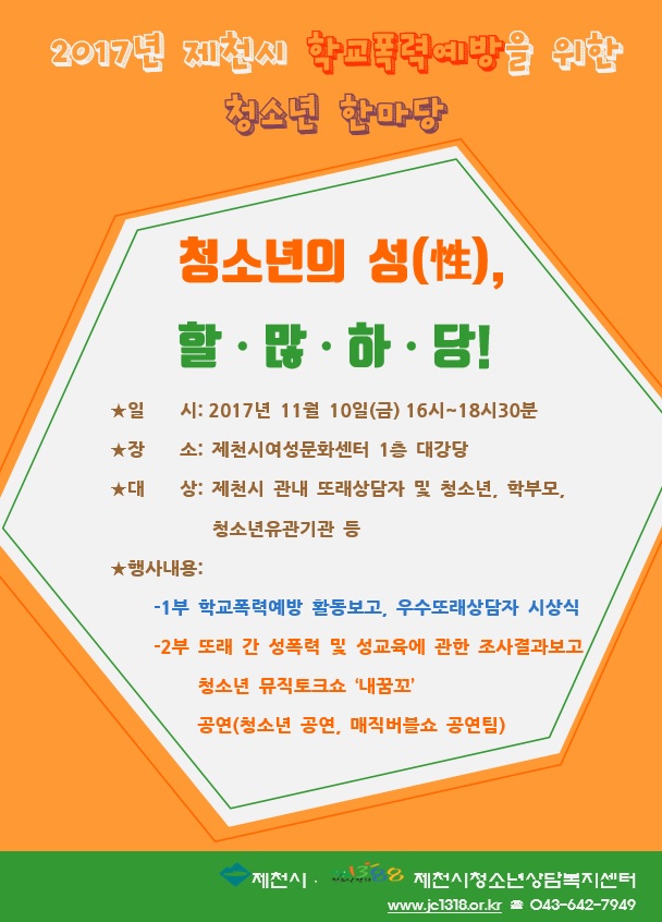 2017³â Á¦Ãµ½ÃÇб³Æø·Â¿¹¹æÀ» À§ÇÑ Ã»¼Ò³â ÇѸ¶´ç ¾È³»
