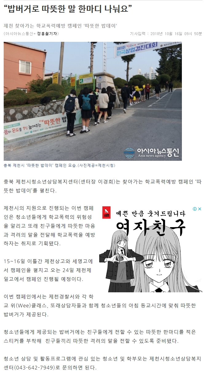 Á¦Ãµ½Ãû¼Ò³â»ó´ãº¹Áö¼¾ÅÍ Ã£¾Æ°¡´Â Çб³Æø·Â¿¹¹æ Ä·ÆäÀÎ 'µû¶æÇÑ ¹äµ¥ÀÌ' ½Ç½Ã