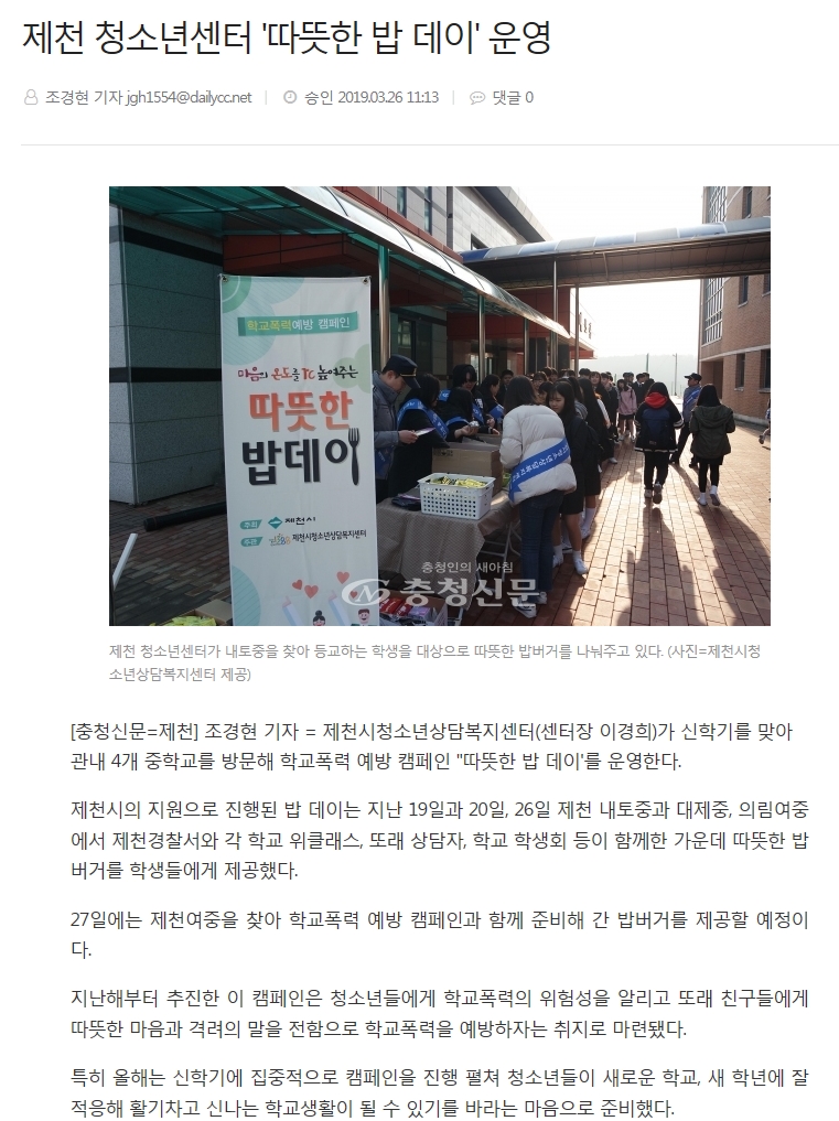 Á¦Ãµ û¼Ò³â¼¾ÅÍ 'µû¶æÇÑ ¹ä µ¥ÀÌ' ¿î¿µ