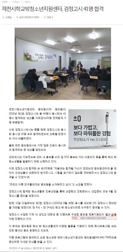 Á¦Ãµ½ÃÇб³¹Ûû¼Ò³âÁö¿ø¼¾ÅÍ, °ËÁ¤°í½Ã 41¸í ÇÕ°Ý
