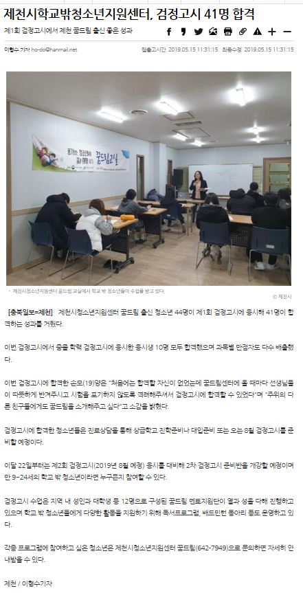 Á¦Ãµ½ÃÇб³¹Ûû¼Ò³âÁö¿ø¼¾ÅÍ, °ËÁ¤°í½Ã 41¸í ÇÕ°Ý
