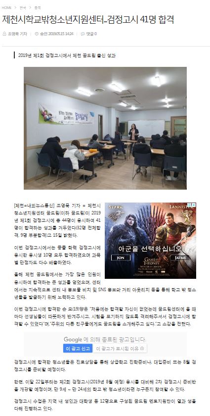 Á¦Ãµ½ÃÇб³¹Ûû¼Ò³âÁö¿ø¼¾ÅÍ...°ËÁ¤°í½Ã 41¸í ÇÕ°Ý