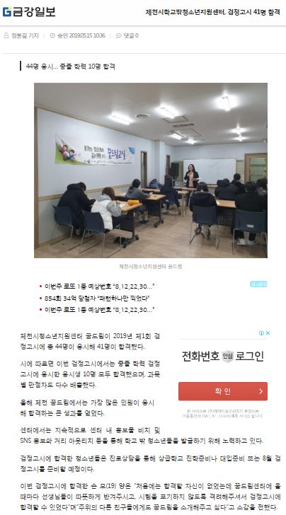 Á¦Ãµ½ÃÇб³¹Ûû¼Ò³âÁö¿ø¼¾ÅÍ, °ËÁ¤°í½Ã 41¸í ÇÕ°Ý