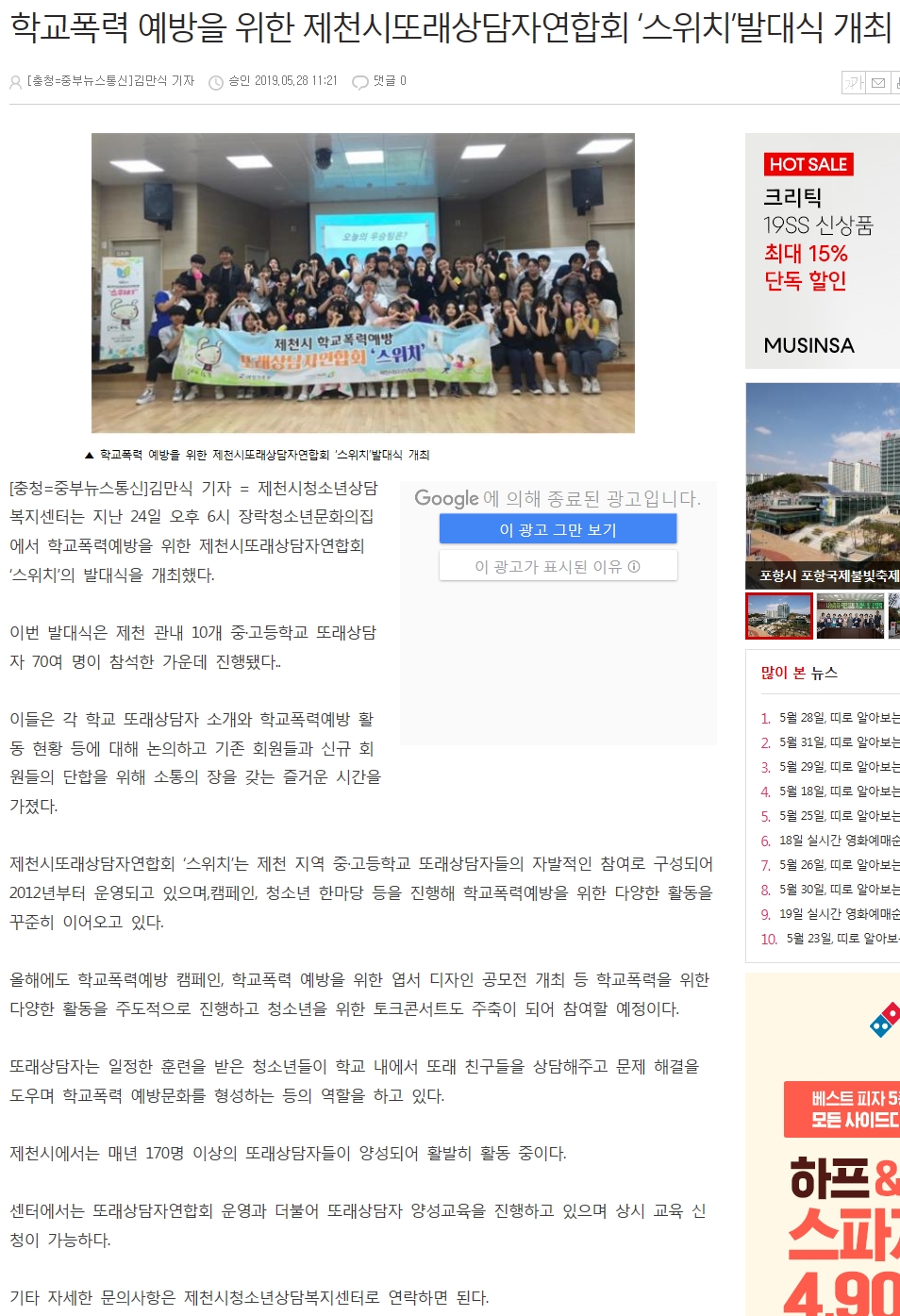 Çб³Æø·Â ¿¹¹æÀ» À§ÇÑ Á¦Ãµ½Ã¶Ç·¡»ó´ãÀÚ¿¬ÇÕȸ '½ºÀ§Ä¡' ¹ß´ë½Ä °³ÃÖ