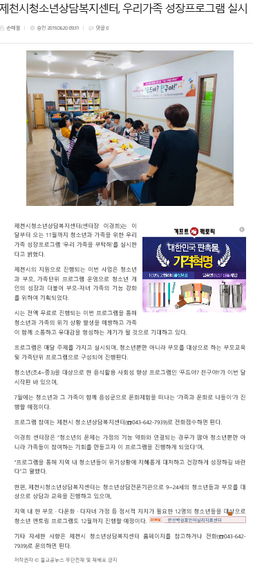 Á¦Ãµ½Ãû¼Ò³â»ó´ãº¹Áö¼¾ÅÍ, ¿ì¸®°¡Á· ¼ºÀåÇÁ·Î±×·¥ ½Ç½Ã