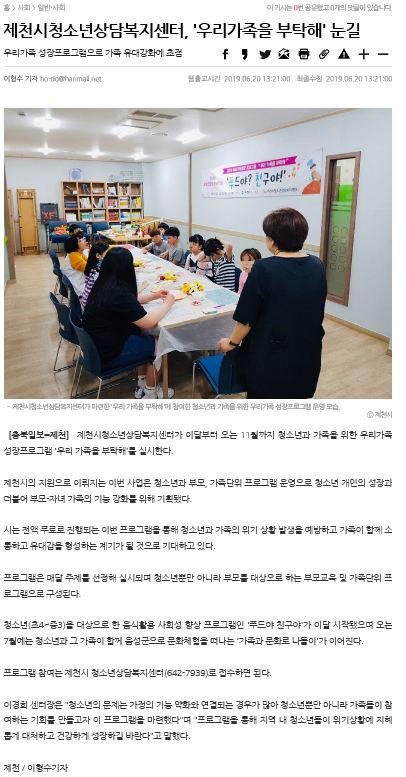 Á¦Ãµ½Ãû¼Ò³â»ó´ãº¹Áö¼¾ÅÍ, '¿ì¸®°¡Á·À» ºÎÅ¹ÇØ'´«±æ