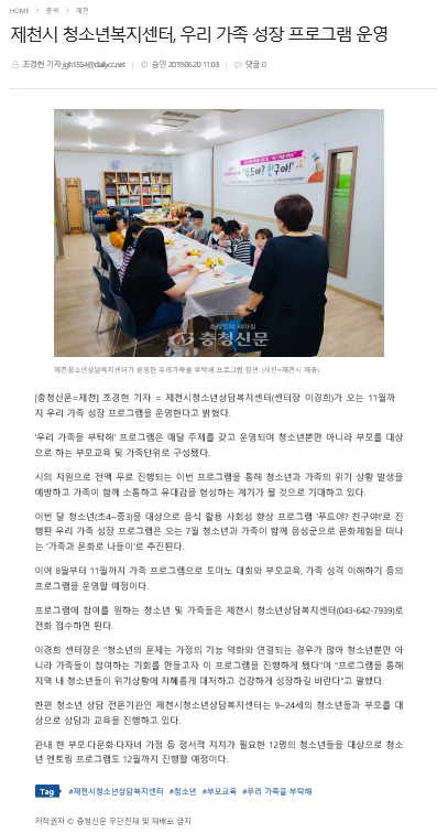 Á¦Ãµ½Ã û¼Ò³âº¹Áö¼¾ÅÍ, ¿ì¸® °¡Á· ¼ºÀå ÇÁ·Î±×·¥ ¿î¿µ