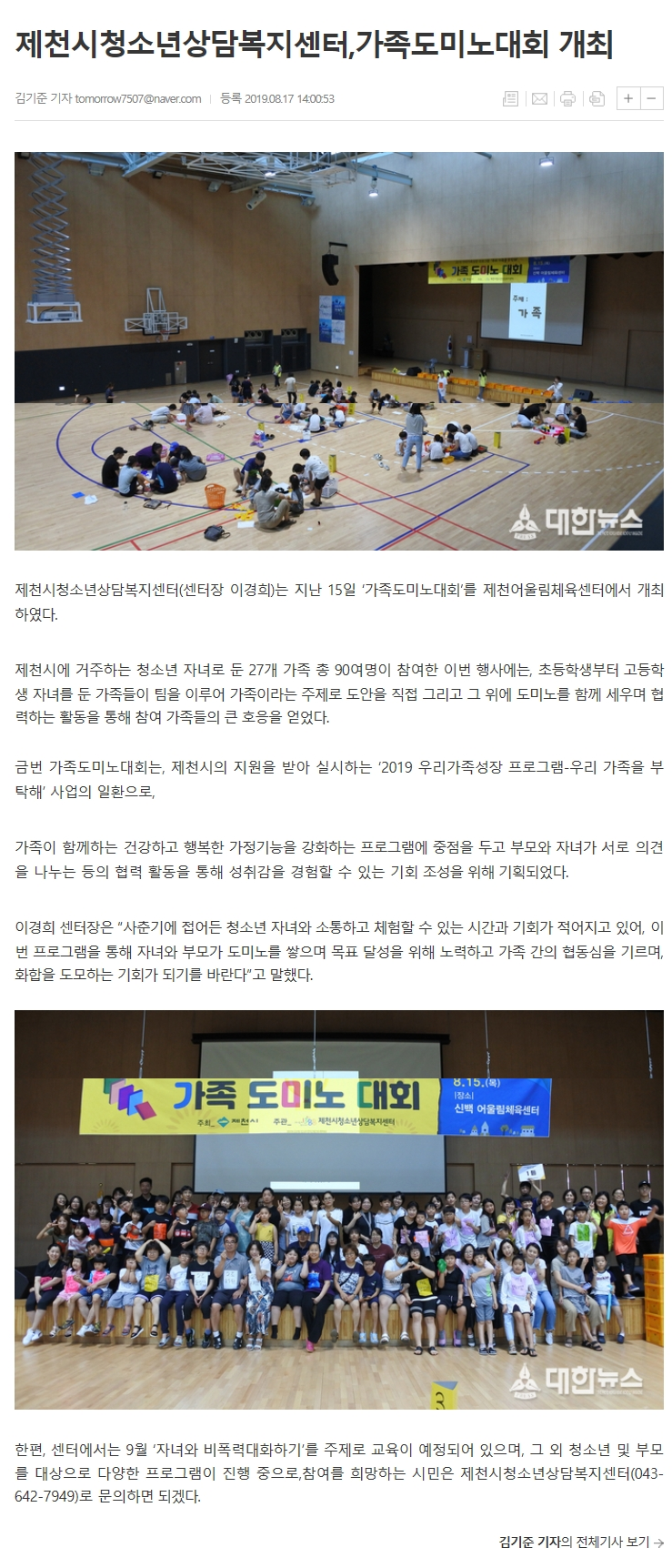 Á¦Ãµ½Ãû¼Ò³â»ó´ãº¹Áö¼¾ÅÍ, °¡Á·µµ¹Ì³ë´ëȸ °³ÃÖ