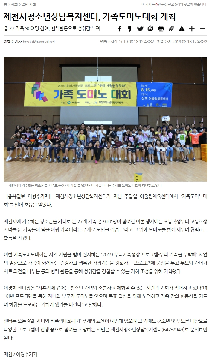 Á¦Ãµ½Ãû¼Ò³â»ó´ãº¹Áö¼¾ÅÍ, °¡Á·µµ¹Ì³ë´ëȸ °³ÃÖ