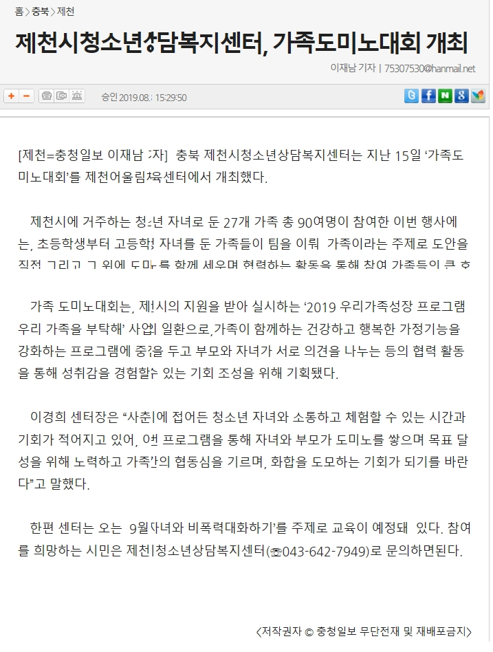 Á¦Ãµ½Ãû¼Ò³â»ó´ãº¹Áö¼¾ÅÍ, °¡Á·µµ¹Ì³ë´ëȸ °³ÃÖ