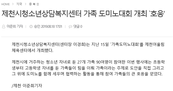 Á¦Ãµ½Ãû¼Ò³â»ó´ãº¹Áö¼¾ÅÍ °¡Á·µµ¹Ì³ë´ëȸ °³ÃÖ 'È£ÀÀ'