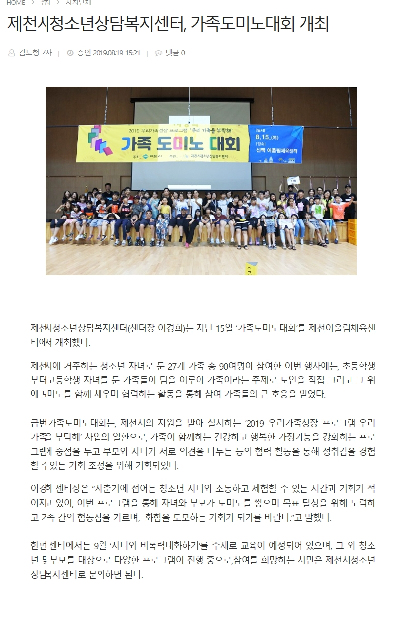 Á¦Ãµ½Ãû¼Ò³â»ó´ãº¹Áö¼¾ÅÍ, °¡Á·µµ¹Ì³ë´ëȸ °³ÃÖ