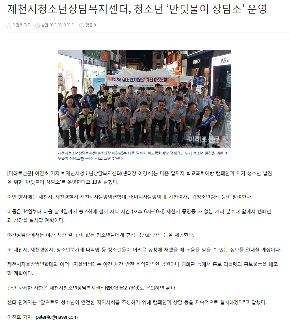 Á¦Ãµ½Ãû¼Ò³â»ó´ãº¹Áö¼¾ÅÍ, û¼Ò³â '¹Ýµ÷ºÒÀÌ »ó´ã¼Ò' ¿î¿µ