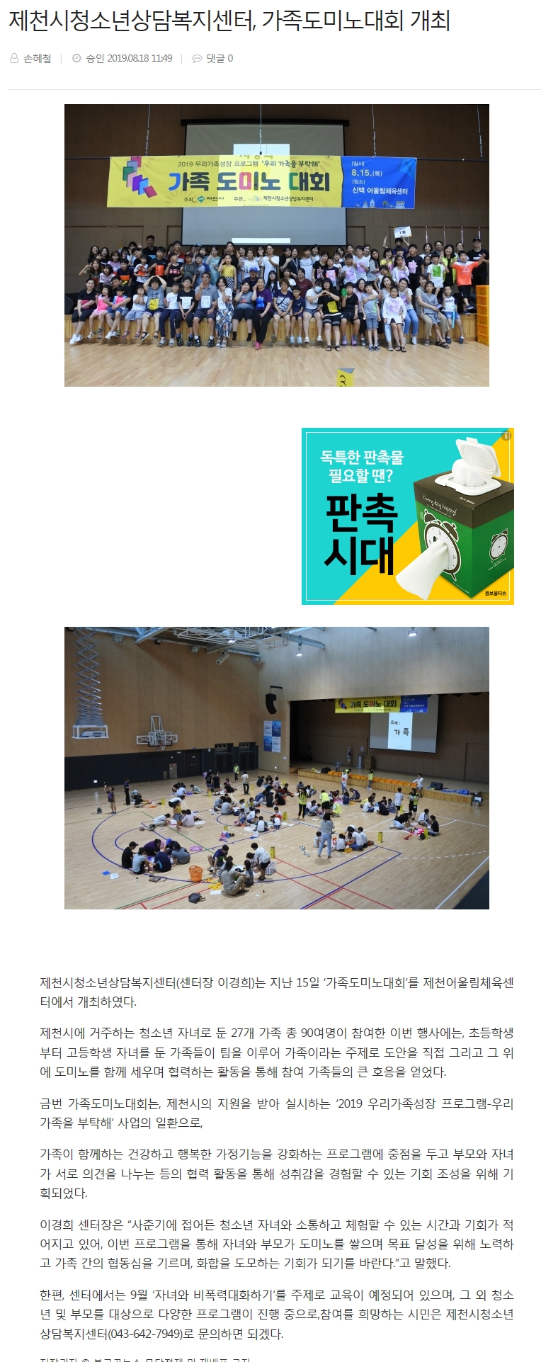 Á¦Ãµ½Ãû¼Ò³â»ó´ãº¹Áö¼¾ÅÍ, °¡Á·µµ¹Ì³ë´ëȸ °³ÃÖ