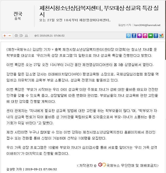 Á¦Ãµ½Ãû¼Ò³â»ó´ãº¹Áö¼¾ÅÍ, ºÎ¸ð´ë»ó ¼º±³À° Ư° ½Ç½Ã