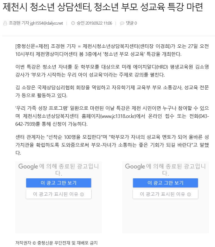Á¦Ãµ½Ã û¼Ò³â »ó´ã¼¾ÅÍ, û¼Ò³â ºÎ¸ð ¼º±³À° Ư° ¸¶·Ã
