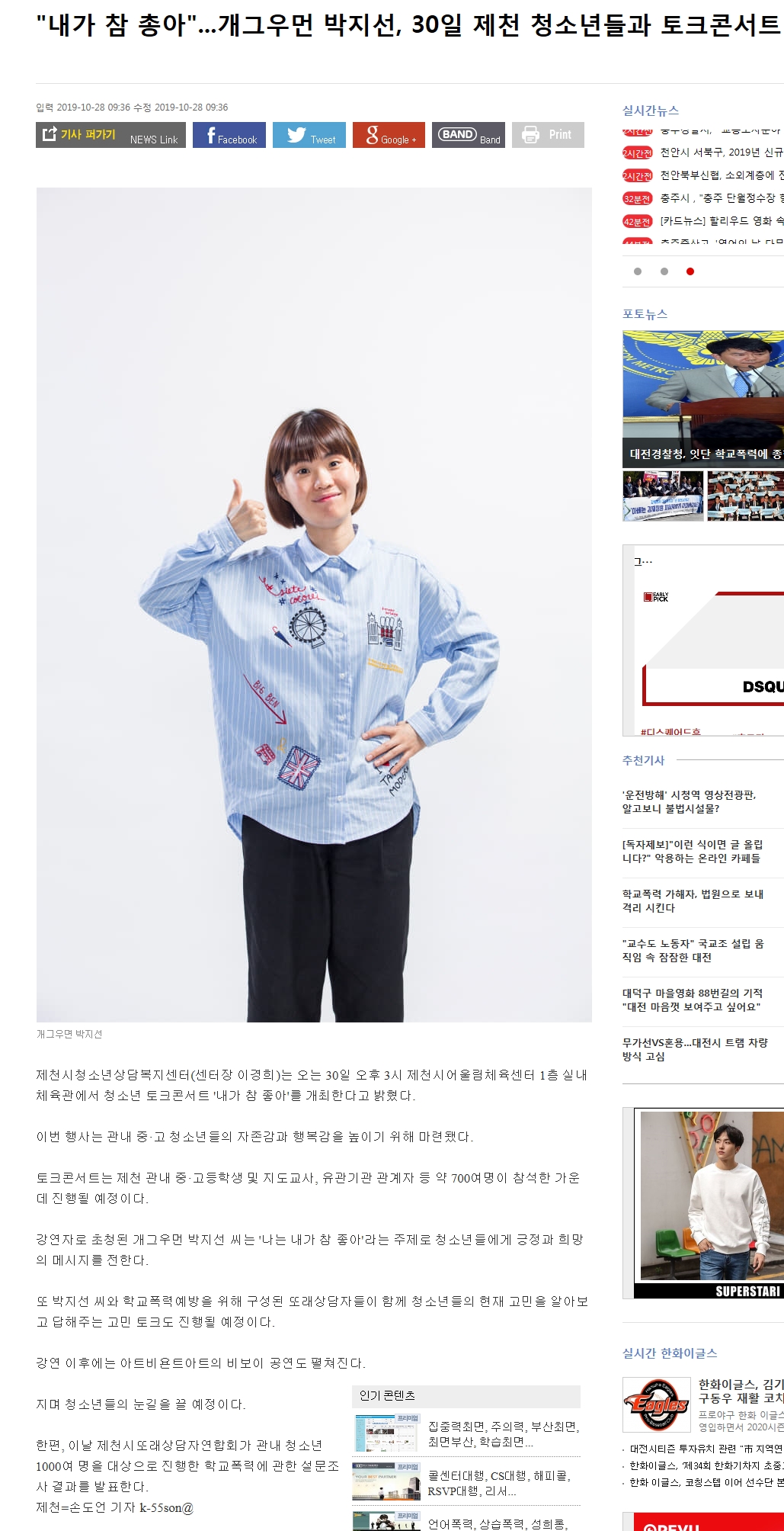 "³»°¡ Âü ÁÁ¾Æ"... °³±×¿ì¸Õ ¹ÚÁö¼±, 30ÀÏ Á¦Ãµ û¼Ò³âµé°ú ÅäÅ©ÄܼƮ