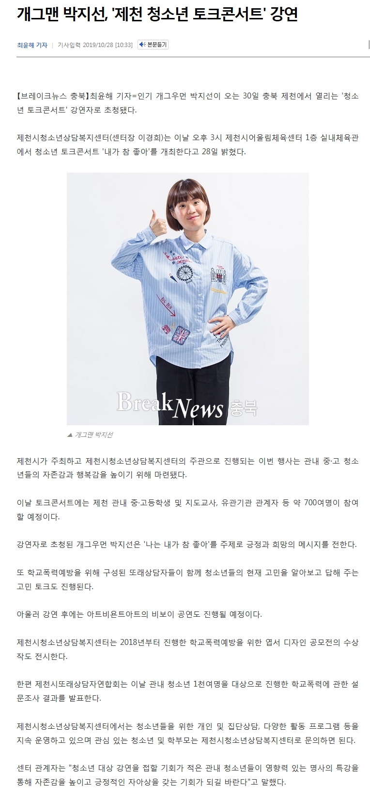 °³±×¸Ç ¹ÚÁö¼±, 'Á¦Ãµ û¼Ò³â ÅäÅ©ÄܼƮ'°¿¬