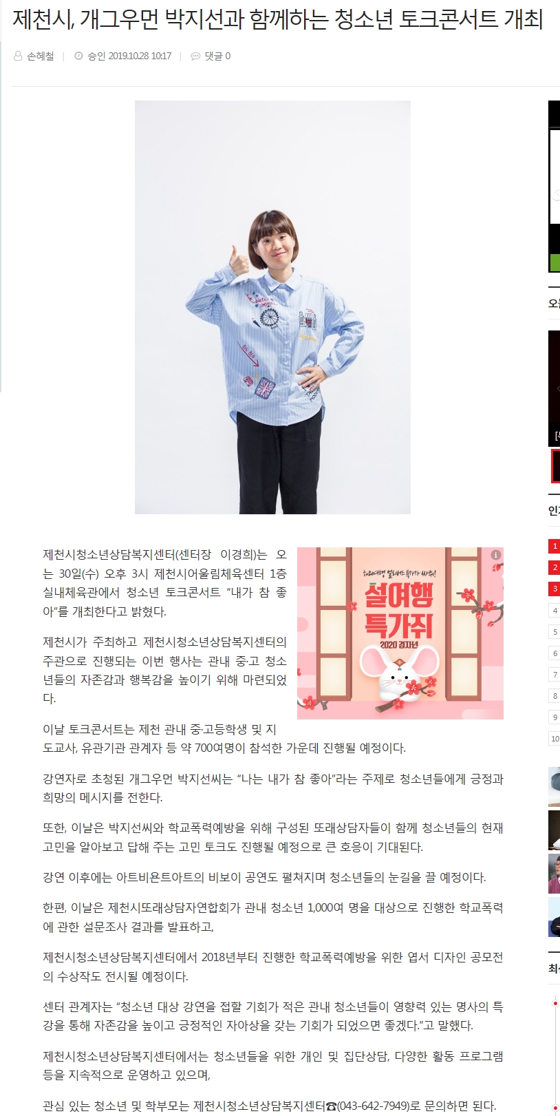 Á¦Ãµ½Ã, °³±×¿ì¸Õ ¹ÚÁö¼±°ú ÇÔ²²Çϴ û¼Ò³â ÅäÅ©ÄܼƮ °³ÃÖ