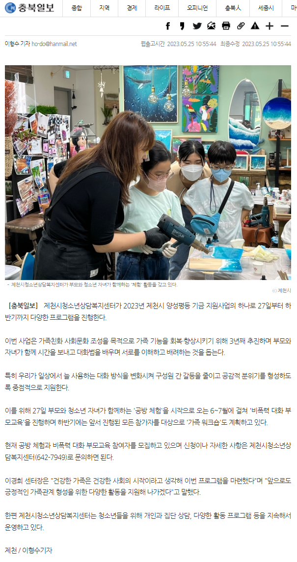 Á¦Ãµ½Ãû¼Ò³â»ó´ãº¹Áö¼¾ÅÍ"°¡Á·°ú ÀÏ»ó´ëÈ, ¿¹»Û ¸»·Î ³ª´²¿ä" ¾ç¼ºÆòµî ÇÁ·Î±×·¥ ¿î¿µ