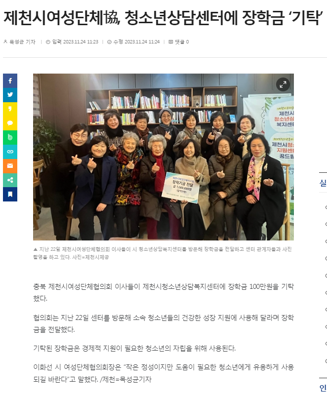 Á¦Ãµ¿©¼º´Üü, û¼Ò³â»ó´ã¼¾ÅÍ¿¡ ÀåÇÐ±Ý '±âŹ'