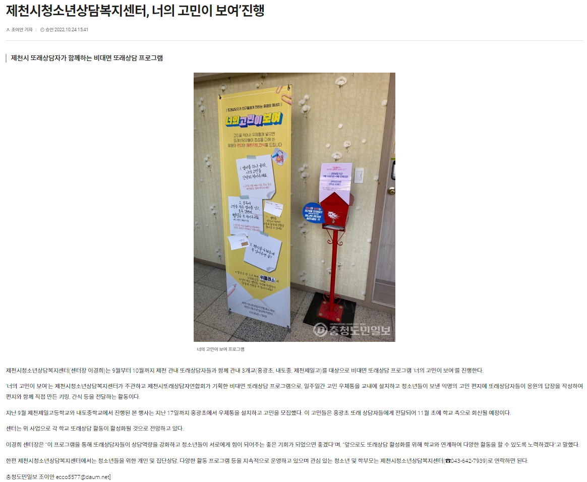 Á¦Ãµ½Ãû¼Ò³â»ó´ãº¹Áö¼¾ÅÍ, '³ÊÀÇ °í¹ÎÀÌ º¸¿©' ÁøÇà