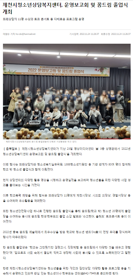 Á¦Ãµ½Ãû¼Ò³â»ó´ãº¹Áö¼¾ÅÍ, ¿î¿µº¸°íȸ ¹× ²Þµå¸² Á¹¾÷½Ä °³ÃÖ
