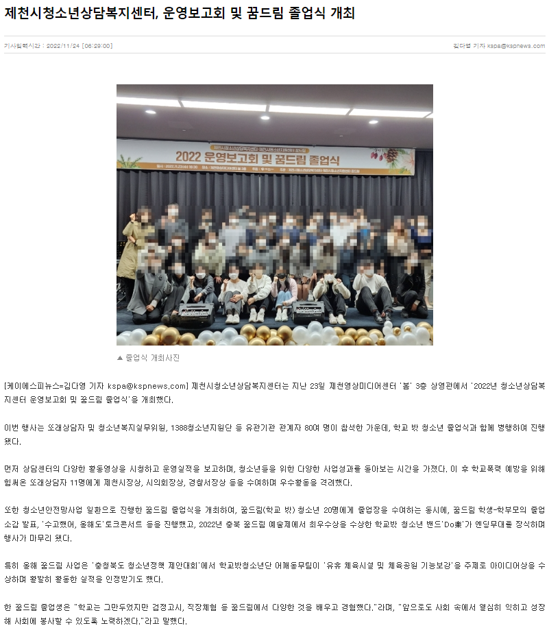 Á¦Ãµ½Ãû¼Ò³â»ó´ãº¹Áö¼¾ÅÍ, ¿î¿µº¸°íȸ ¹× ²Þµå¸² Á¹¾÷½Ä °³ÃÖ