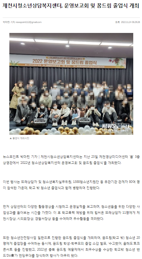 Á¦Ãµ½Ãû¼Ò³â»ó´ãº¹Áö¼¾ÅÍ, ¿î¿µº¸°íȸ ¹× ²Þµå¸² Á¹¾÷½Ä °³ÃÖ