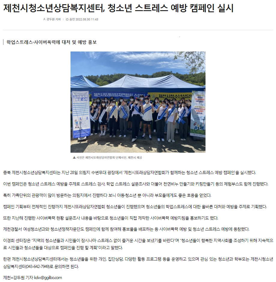 Á¦Ãµ½Ãû¼Ò³â»ó´ãº¹Áö¼¾ÅÍ, û¼Ò³â ½ºÆ®·¹½º ¿¹¹æ Ä·ÆäÀÎ ½Ç½Ã
