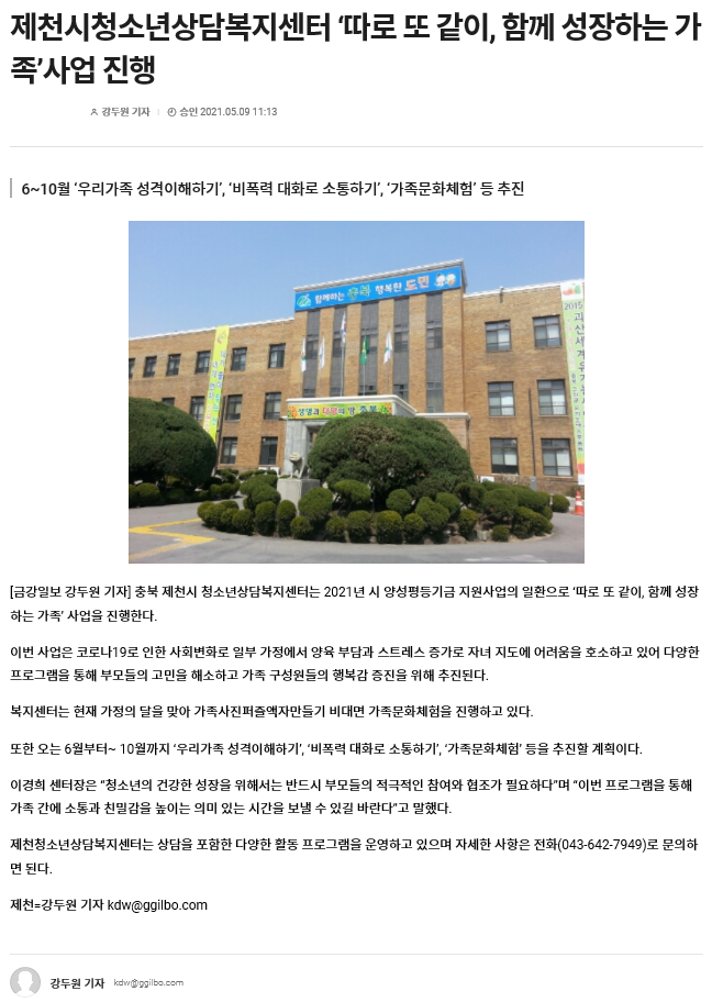 Á¦Ãµ½Ãû¼Ò³â»ó´ãº¹Áö¼¾ÅÍ, 'µû·Î ¶Ç °°ÀÌ, ÇÔ²² ¼ºÀåÇÏ´Â °¡Á·' »ç¾÷ ÁøÇà