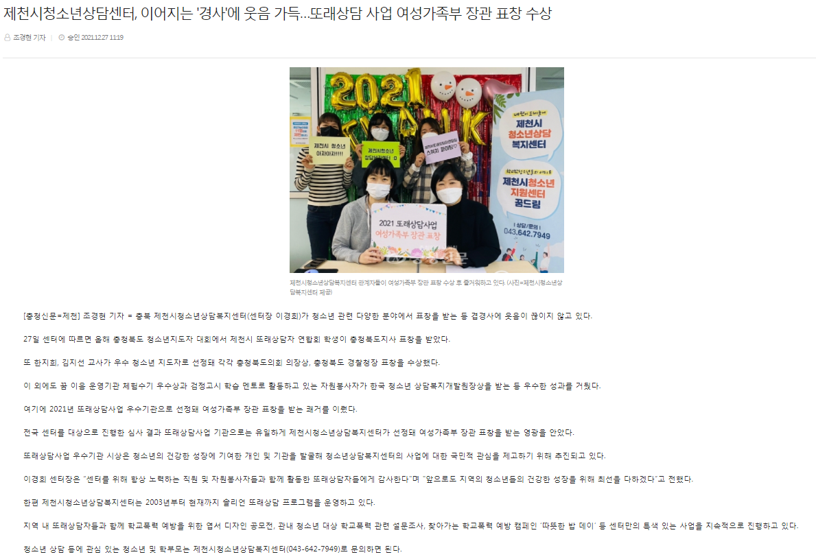 Á¦Ãµ½Ãû¼Ò³â»ó´ãº¹Áö¼¾ÅÍ, À̾îÁö´Â'°æ»ç'¿¡ ¿ôÀ½ °¡µæ...¶Ç·¡»ó´ã »ç¾÷ ¿©¼º°¡Á·ºÎ Àå°ü ǥâ ¼ö»ó