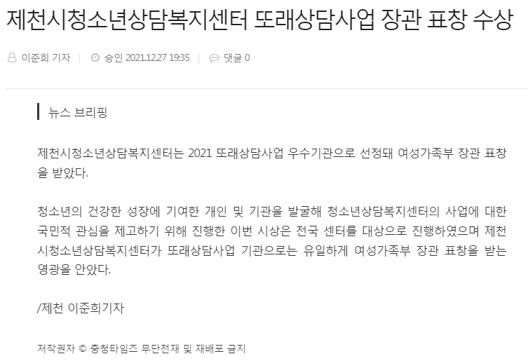 Á¦Ãµ½Ãû¼Ò³â»ó´ãº¹Áö¼¾ÅÍ, ¶Ç·¡»ó´ã»ç¾÷ Àå°ü ǥâ ¼ö»ó