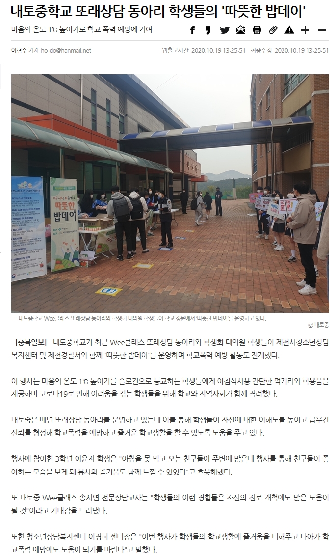 ³»ÅäÁßÇб³ ¶Ç·¡»ó´ã µ¿¾Æ¸® ÇлýµéÀÇ 'µû¶æÇÑ ¹äµ¥ÀÌ'