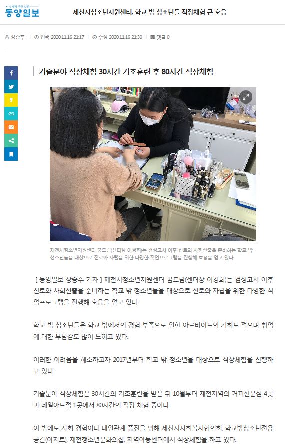 Á¦Ãµ½Ãû¼Ò³âÁö¿ø¼¾ÅÍ, Çб³ ¹Û û¼Ò³âµé Á÷ÀåüÇè Å« È£ÀÀ