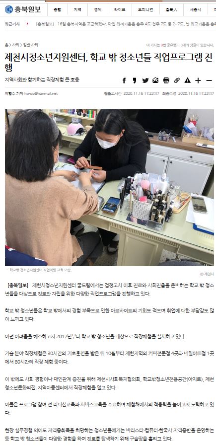 Á¦Ãµ½Ãû¼Ò³âÁö¿ø¼¾ÅÍ, Çб³ ¹Û û¼Ò³âµé Á÷¾÷ÇÁ·Î±×·¥ ÁøÇà
