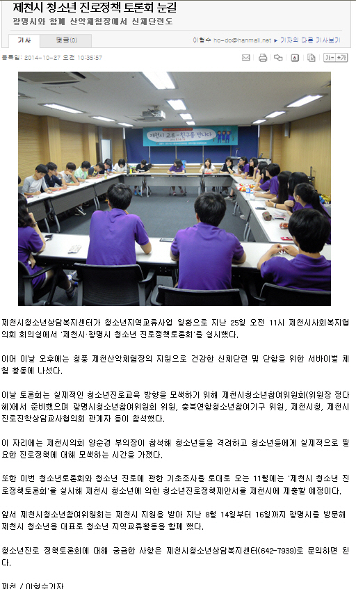 Á¦Ãµ½Ã û¼Ò³â Áø·ÎÁ¤Ã¥ Åä·Ðȸ ´«±æ