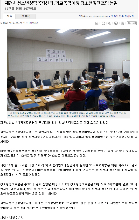 Á¦Ãµ½Ãû¼Ò³â»ó´ãº¹Áö¼¾ÅÍ, Çб³Æø·Â¿¹¹æ û¼Ò³âÁ¤Ã¥Æ÷·³ ´«±æ