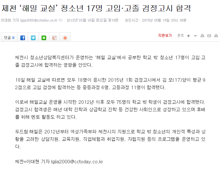 Á¦Ãµ 'ÇØ¹Ð ±³½Ç' û¼Ò³â 17¸í °íÀÔ.°íÁ¹ °ËÁ¤°í½Ã ÇÕ°Ý