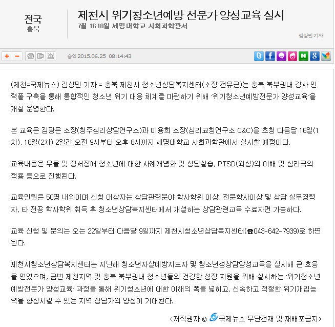 Á¦Ãµ½Ã À§±âû¼Ò³â¿¹¹æ Àü¹®°¡ ¾ç¼º±³À° ½Ç½Ã