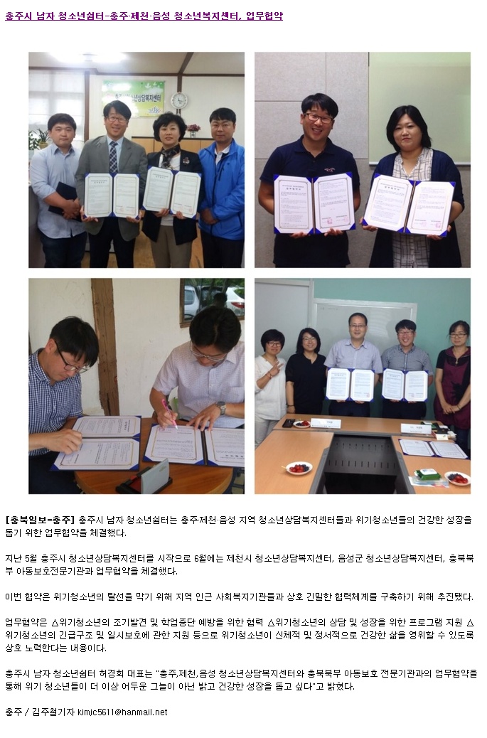ÃæÁֽà ³²ÀÚ Ã»¼Ò³â½°ÅÍ-ÃæÁÖ¡¤Á¦Ãµ¡¤À½¼º û¼Ò³âº¹Áö¼¾ÅÍ, ¾÷¹«Çù¾à