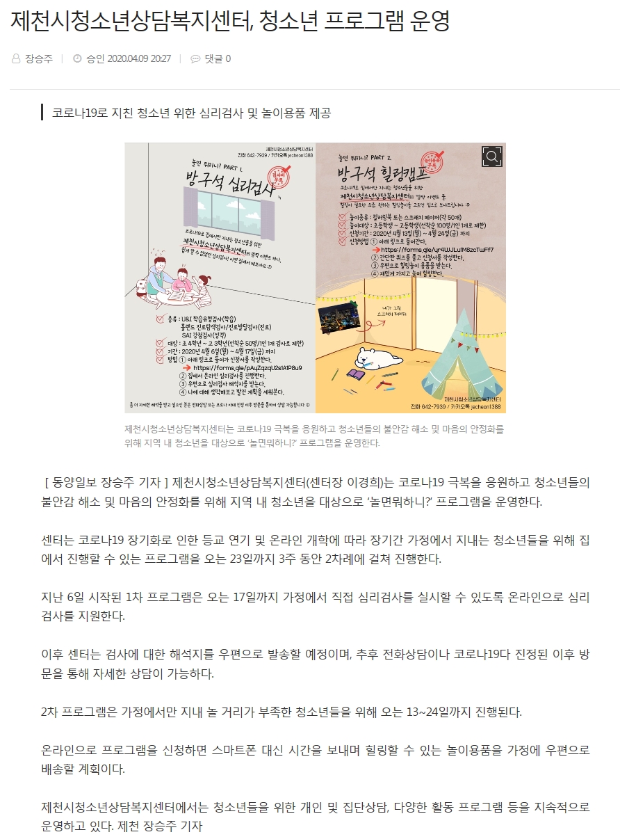 Á¦Ãµ½Ãû¼Ò³â»ó´ãº¹Áö¼¾ÅÍ, û¼Ò³â ÇÁ·Î±×·¥ ¿î¿µ