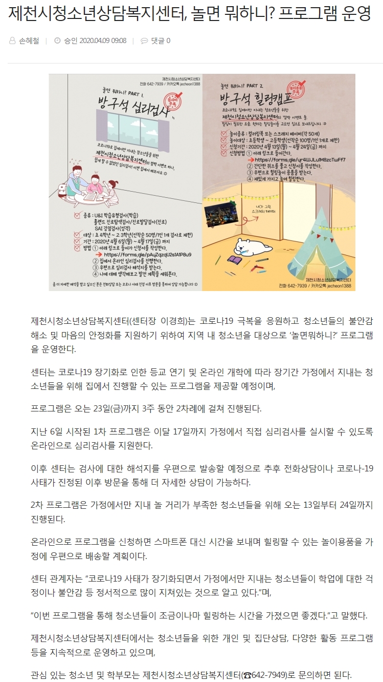 Á¦Ãµ½Ãû¼Ò³â»ó´ãº¹Áö¼¾ÅÍ, ³î¸é ¹¹ÇÏ´Ï? ÇÁ·Î±×·¥ ¿î¿µ
