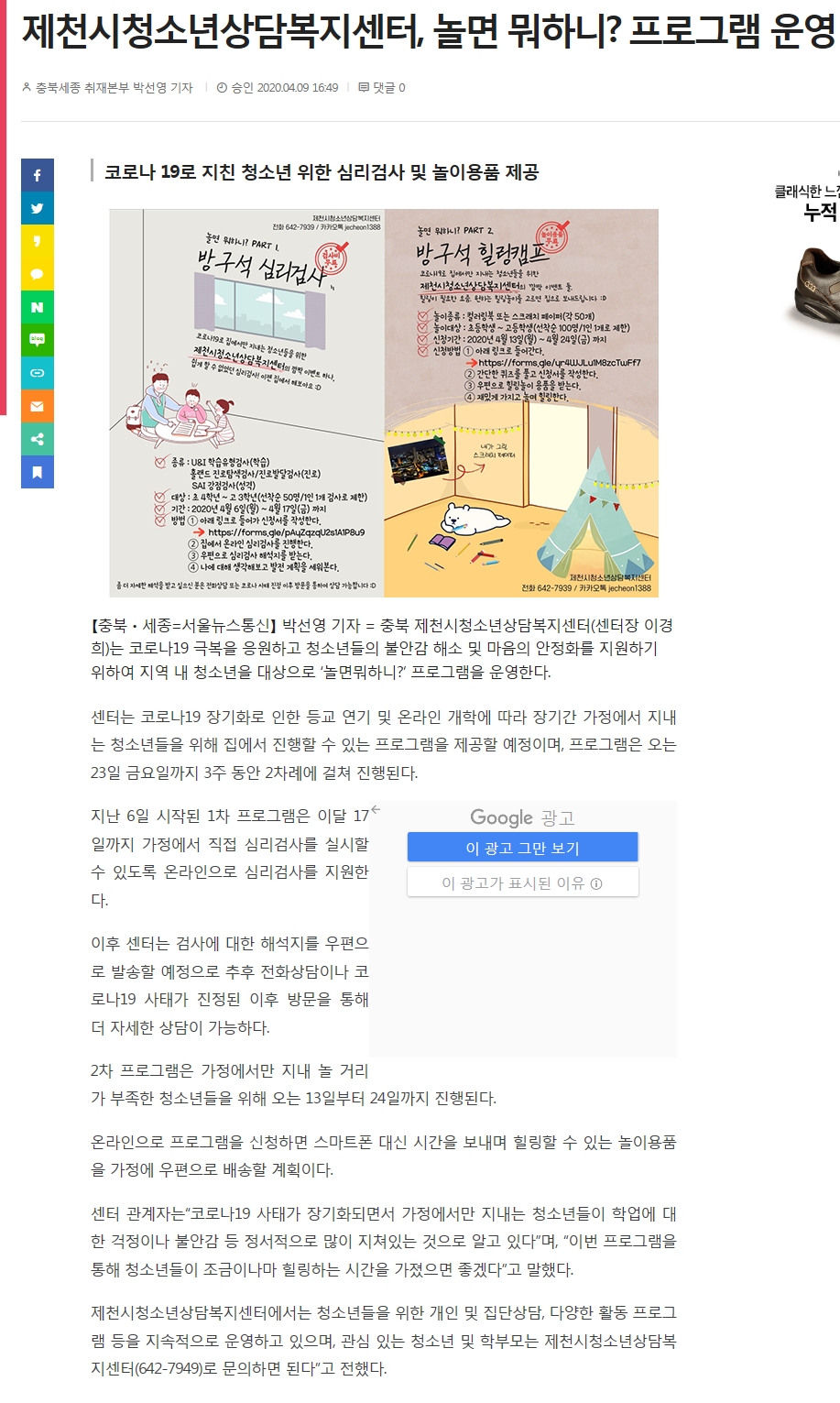 Á¦Ãµ½Ãû¼Ò³â»ó´ãº¹Áö¼¾ÅÍ, ³î¸é¹¹ÇÏ´Ï? ÇÁ·Î±×·¥ ¿î¿µ