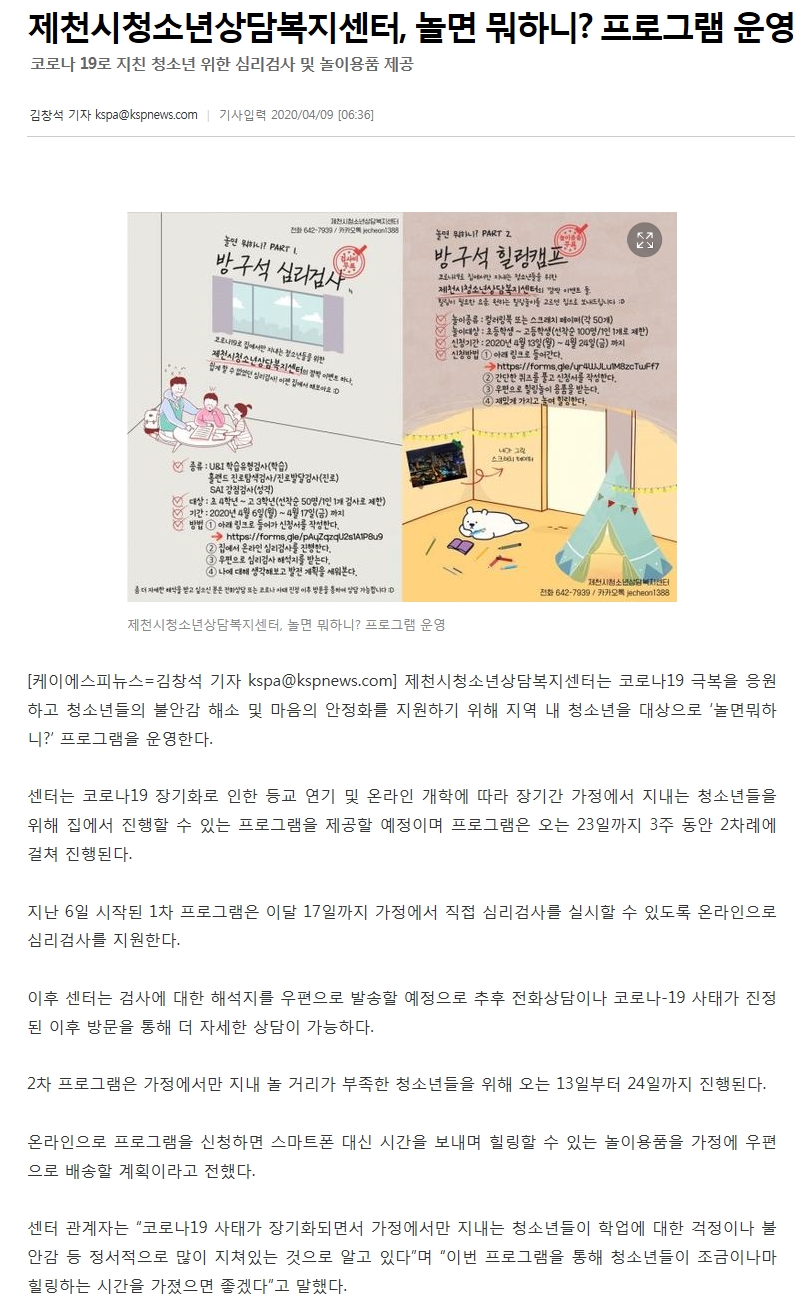 Á¦Ãµ½Ãû¼Ò³â»ó´ãº¹Áö¼¾ÅÍ, ³î¸é ¹¹ÇÏ´Ï? ÇÁ·Î±×·¥ ¿î¿µ