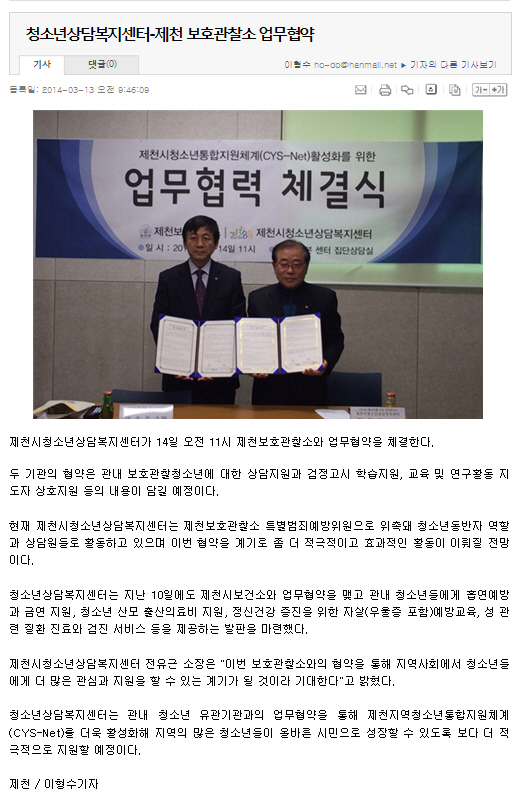 û¼Ò³â»ó´ãº¹Áö¼¾ÅÍ-Á¦Ãµ º¸È£°üÂû¼Ò ¾÷¹«Çù¾à