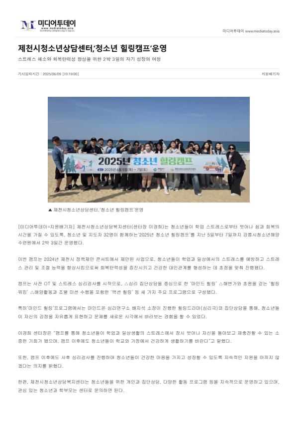 Á¦Ãµ½Ãû¼Ò³â»ó´ã¼¾ÅÍ, 'û¼Ò³â Èú¸µÄ·ÇÁ' ¿î¿µ