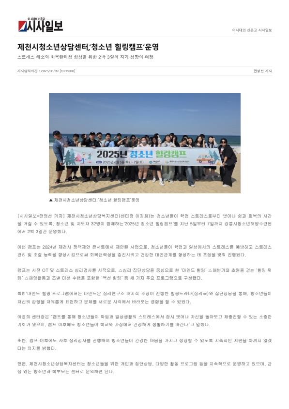 Á¦Ãµ½Ãû¼Ò³â»ó´ã¼¾ÅÍ, 'û¼Ò³â Èú¸µÄ·ÇÁ' ¿î¿µ